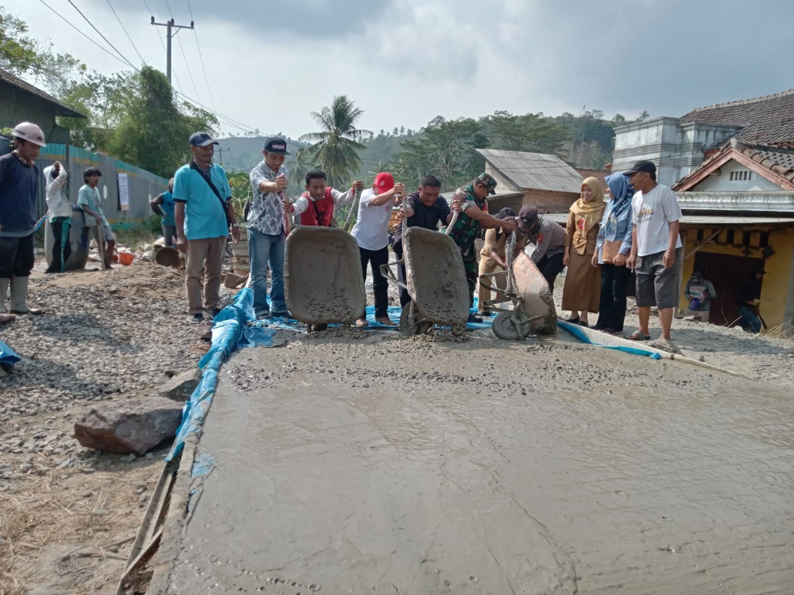 Pemdes Sumur Merealisasikan Pembangunan Cor Beton Lanjutan Jalan Poros Dusun Sumur Induk
