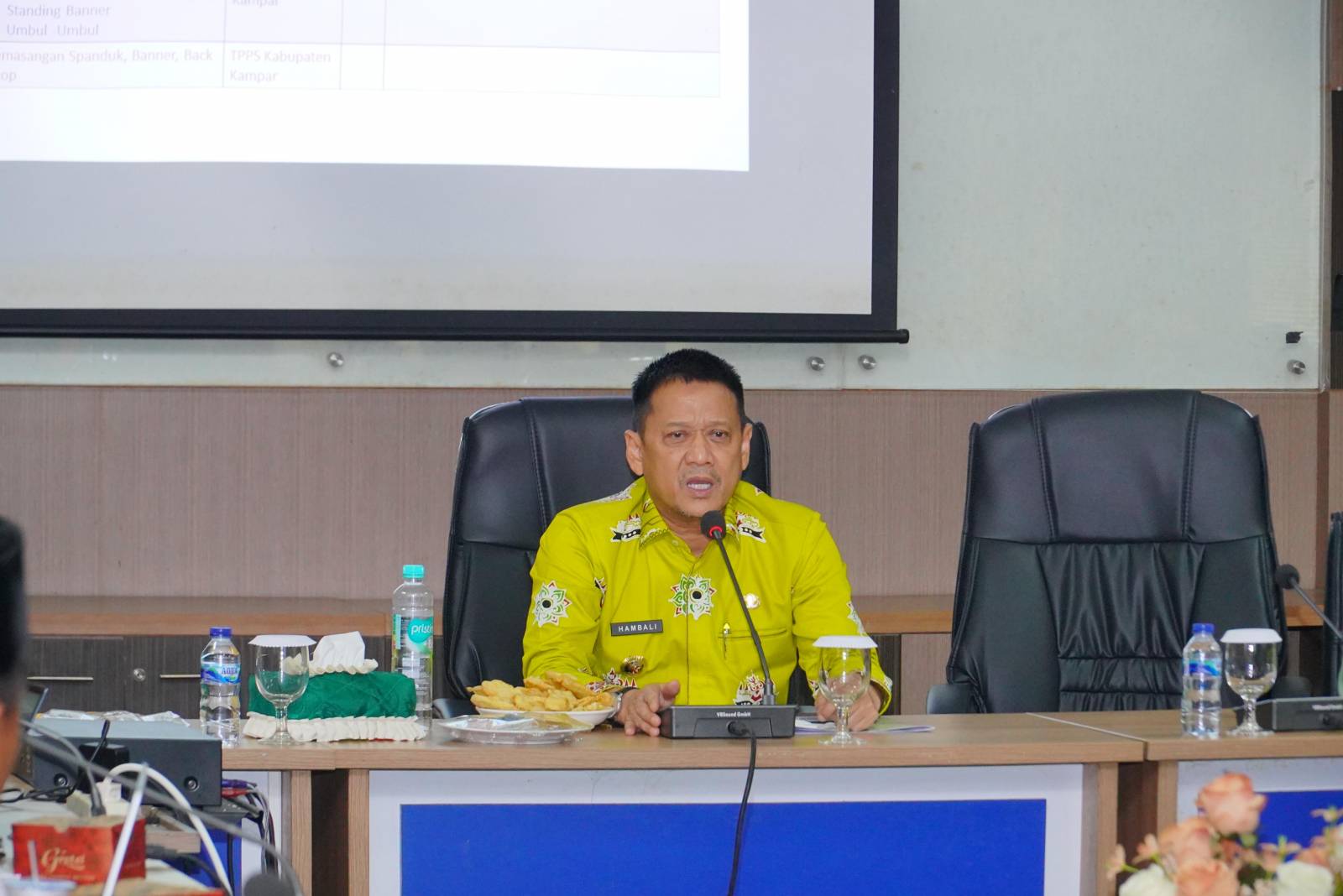 Rapat yang dipimpin langsung Pj Bupati Kampar Hambali SE MH, didampingi Pj Setda Kampar Drs Yusri MSi, dihadiri Pj Ketua TP PKK Kabupaten Kampar Ricana Djayanti Hambali, Plt Ketua DWP Kabupaten Kampar Juli Mastuti Yusri dan Kepala Organisasi Perangkat Daerah (OPD) terkait di Ruang rapat lantai III kantor Bupati Kampar. Kamis,(15/2)
