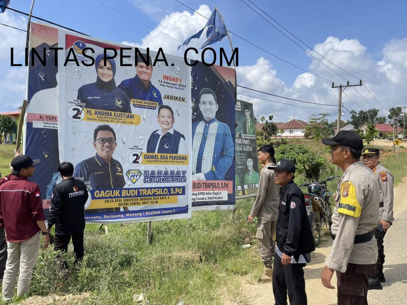 Inhu, Lintaspena.com – Kepolisian Resor (Polres) Indragiri Hulu (Inhu), Polda Riau melalui beberapa Polsek, mengawal penertiban Alat Peraga Sosialisasi (APS) dan Alat Peraga Kampanye (APK) oleh Panitia Pengawas Pemilu Kecamatan (Panwascam) di beberapa kecamatan di Kabupaten Inhu.