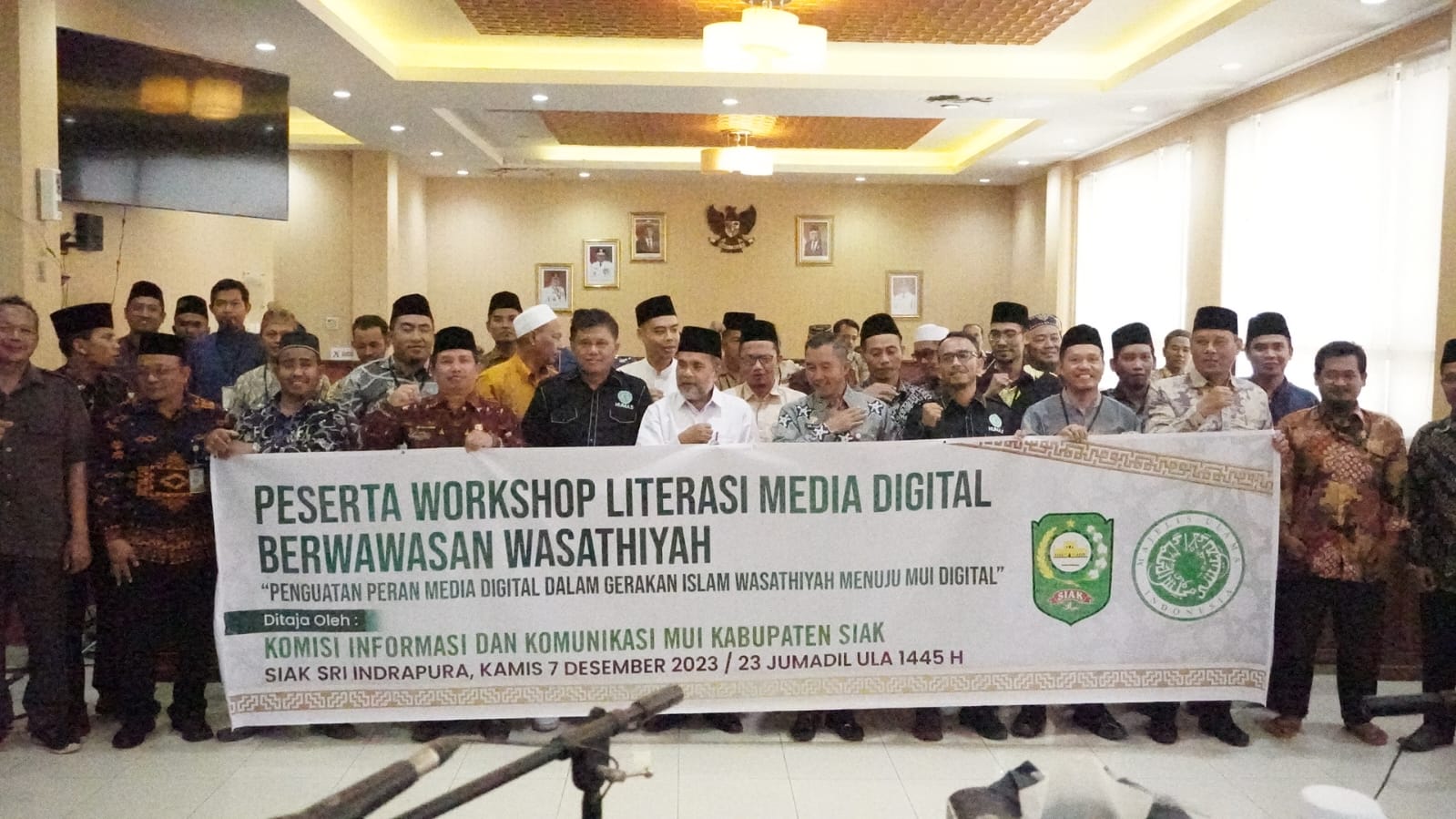 Workshop literasi media digital berwawasan wasathiyah itu bertema” Penguatan Peran Media Digital Dalam Gerakan Islam Wasathiyah Menuju MUI Digital”berlangsung, di ruang Siak Sri Indrapura, Kantor Bupati Siak, Kamis ini, (7/12/2023).