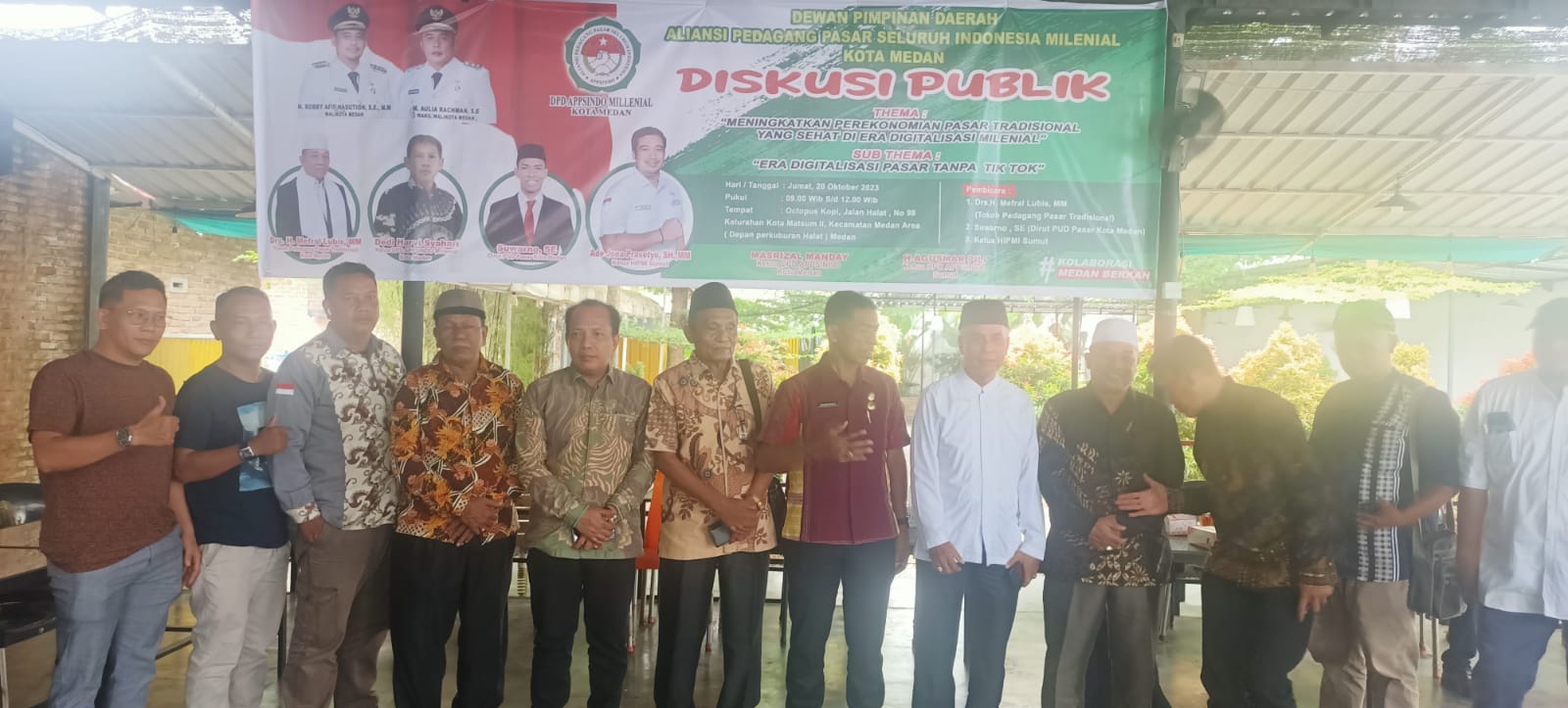 SUMATERA UTARA – LINTASPENA.COM|Sebagai upaya memperkuat pendapatan para pedagang pasar tradisional di Kota Medan di era digitalisasi, Dewan Pimpinan Daerah Aliansi Pedagang Pasar Seluruh Indonesia (DPD APPSINDO) Milenial Kota Medan gelar diskusi Publik, di Octopus Kopi, Jalan Halat , No 98, Kota Matsum II, Kecamatan Medan Area, Kota Medan, Provinsi Sumatera Utara, Jumat (20/10/2023) pagi.