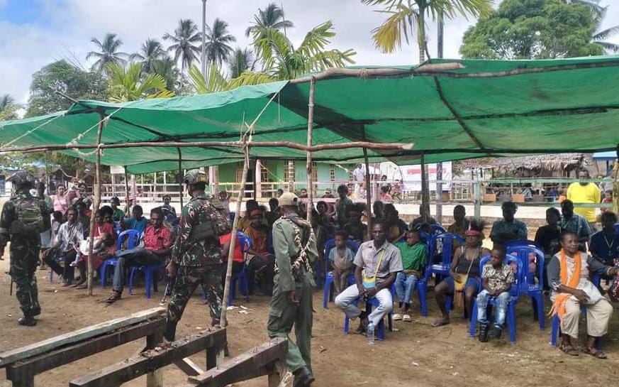 Personel Satgas Pamtas RI-PNG Yonif 141/AYJP Gelar Pengamanan Pernikahan Masal