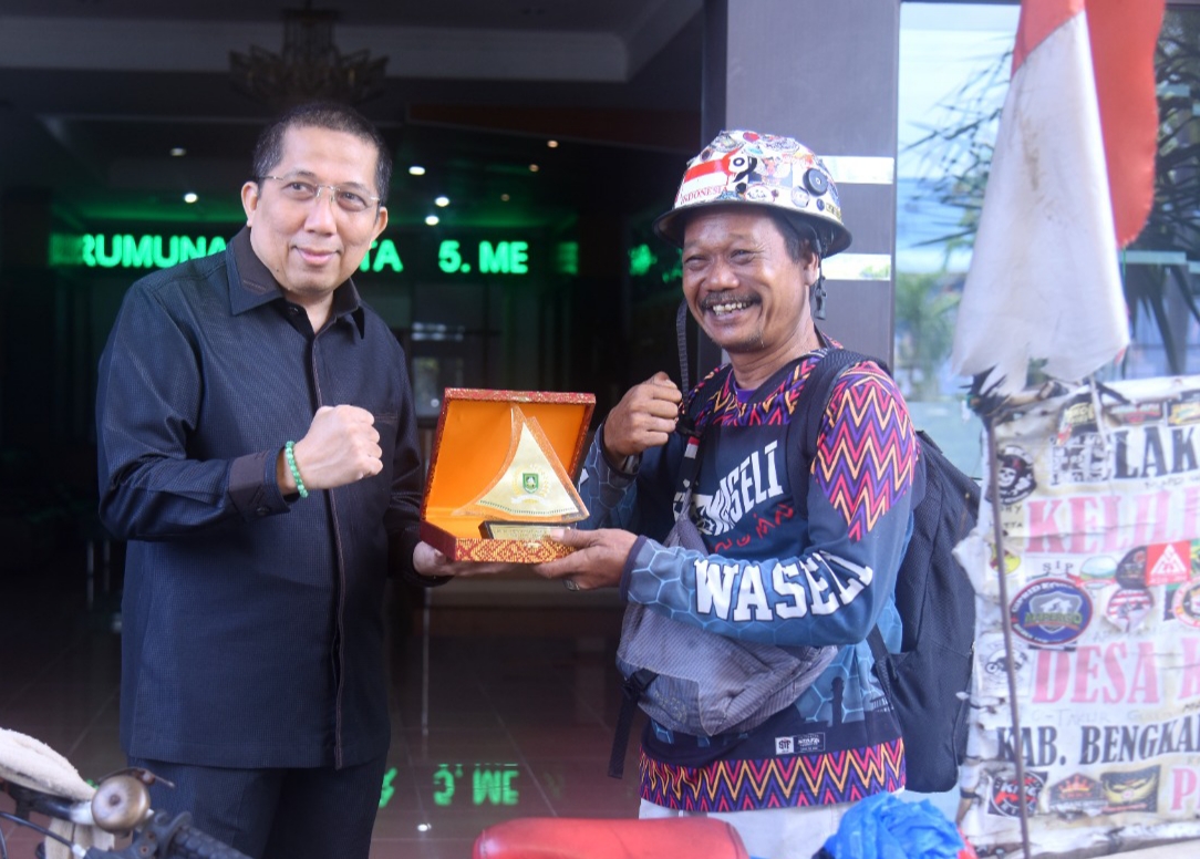 H. Adri menyampaikan apresiasi kepada Joni yang sudah menunaikan nazar nya dan juga sekaligus mengharumkan nama Kabupaten Bengkalis dengan bersepeda berkeliling Indonesia.