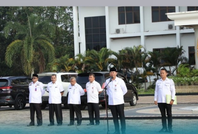 Apel yang digelar di halaman Kantor Bupati Rohul dipimpin Wakil Bupati Rokan Hulu H. Indra Gunawan turut di ikuti Sekda Rohul Muhamad Zaki, Asisten 1 Fatanalia Putra, Asisten II Ibnu Ulya, Asisten III Edi Suharman, Serta Para Kabag dan ASN di Sekretariat Daerah (Setda).