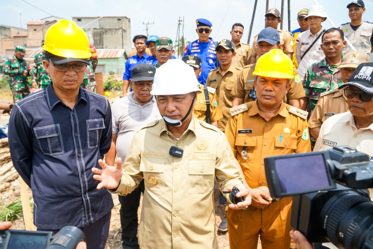 Pantauan di lokasi tampak Pj Bupati Apriyadi Mahmud didampingi Kepala Dinas PUPR Muba Alva Elan SST MPSDA meninjau langsung pembangunan jembatan penghubung antardesa yakni Desa Bandar Agung-Desa Mandala Sari sepanjang 40 meter.