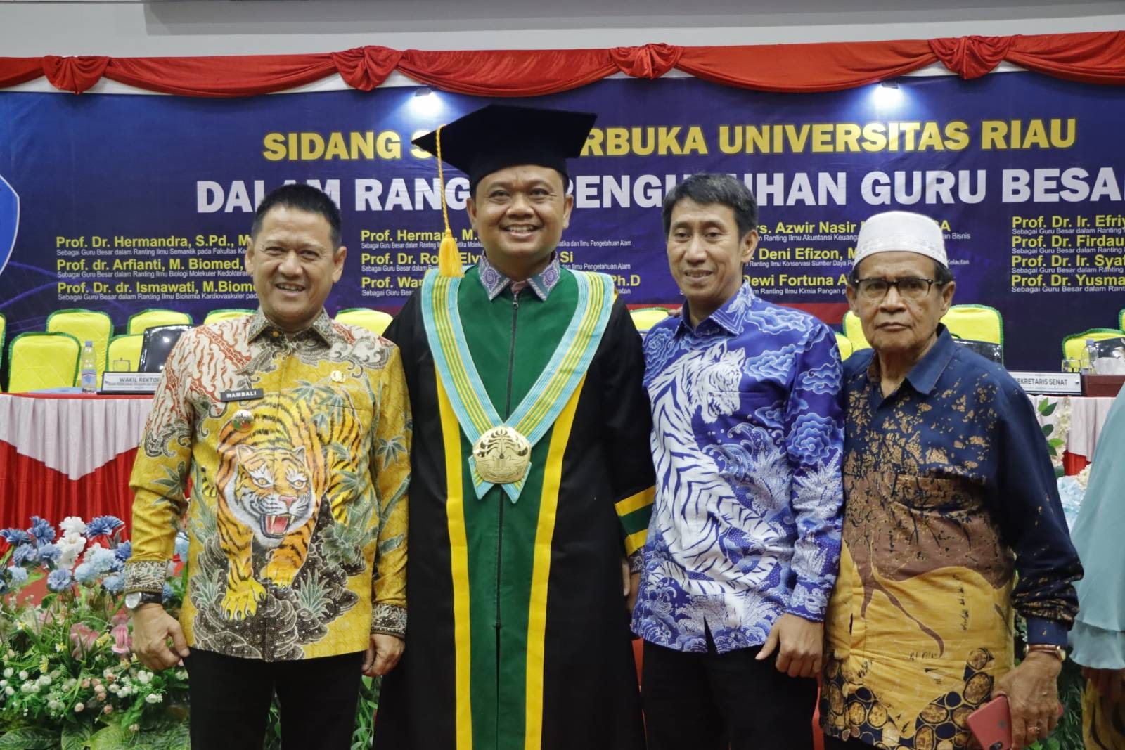 Rektor Universitas Riau, Prof. Dr. Sri Indarti, S.E., M.Si., menjelaskan bahwa 13 Guru Besar yang dikukuhkan pada Sidang Senat Terbuka tersebut adalah: