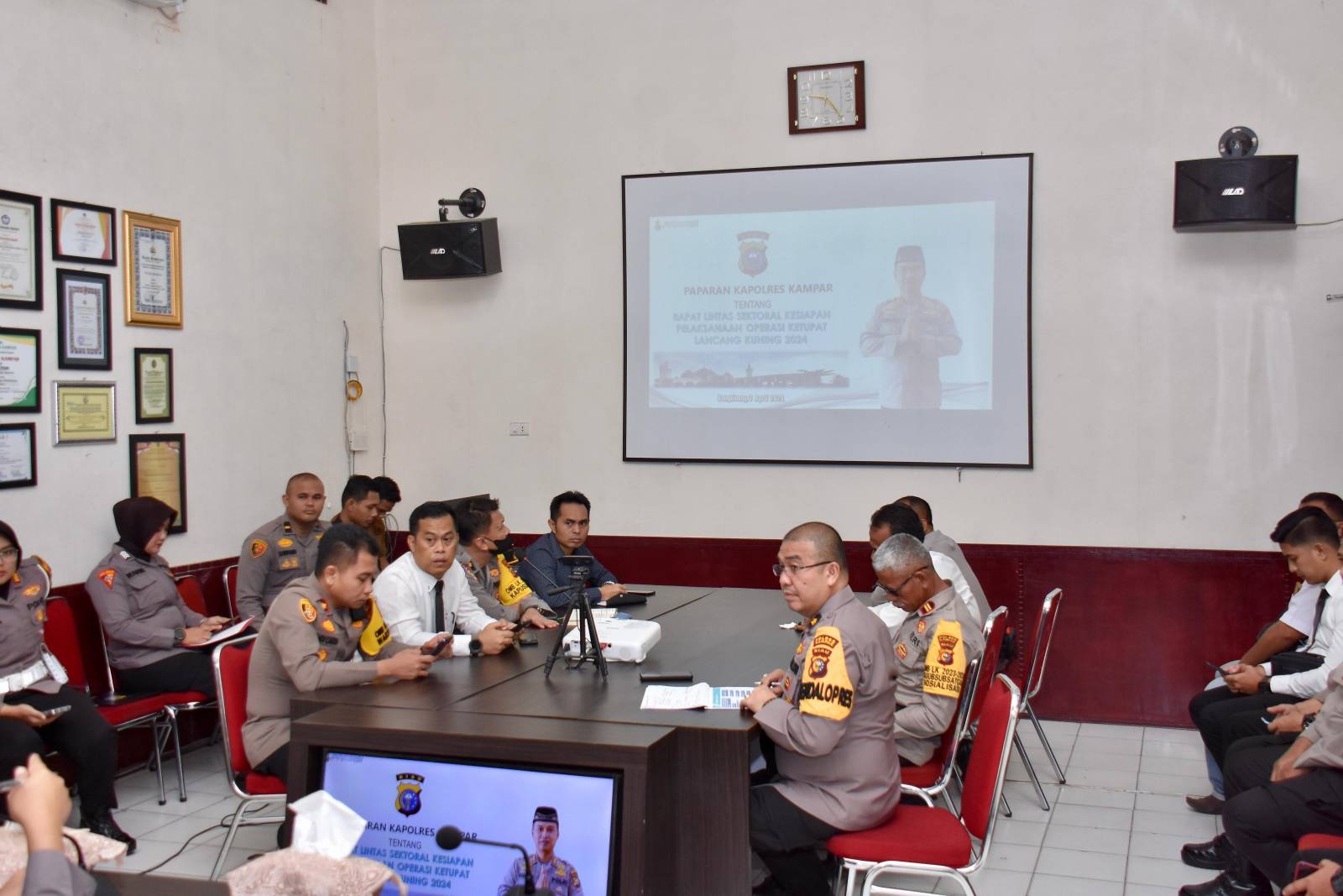 Bangkinang Kota, Lintaspena.com – Pj Bupati Kampar H. Hambali, SE, MH yang diwakili oleh Kepala Dinas Perhubungan Refizal, S.STP menghadiri Rapat Lintas Sektoral Operasi Ketupat Tahun 2024 dalam rangka kesiapan pengamanan Idul Fitri 1445 H, yang diselenggarakan di Mapolres Kampar, Rabu (3/4/2024).