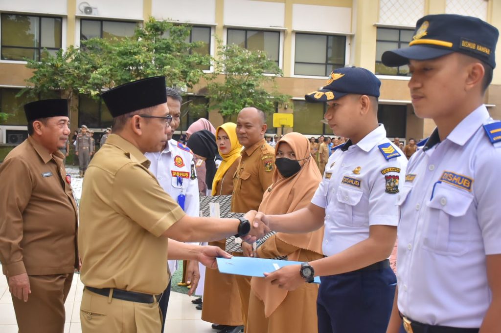 Sebelum menyampaikan amanat, terlebih dahulu Azwan secara simbolis menyerahkan Surat Keputusan (SK) kepada para Calon Pegawai Negeri Sipil (CPNS) khusus dilingkungan Dinas Perhubungan Kabupaten Kampar.