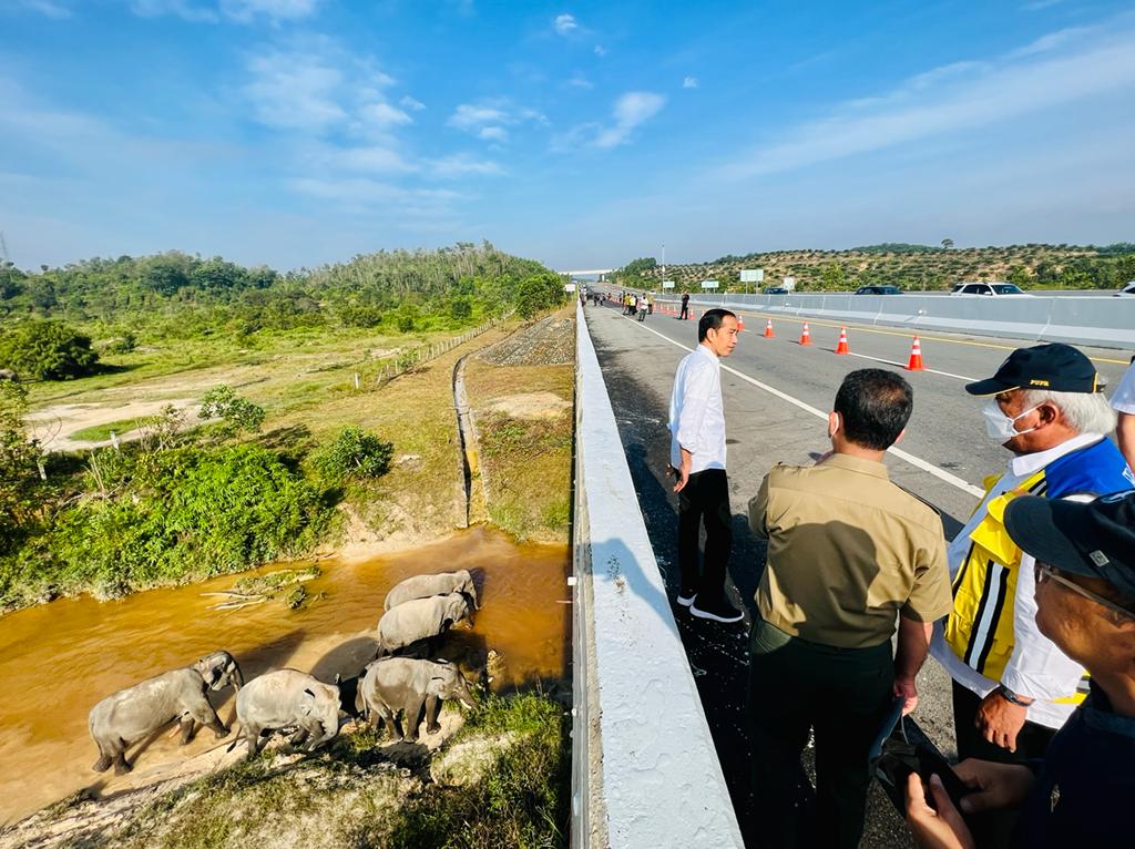Sehingga, lanjut Presiden, pembangunan jalan tol ini tidak mengganggu perlintasan salah satu satwa yang dilindungi yaitu gajah Sumatra. Tidak hanya di Riau, Presiden menuturkan bahwa upaya pelestarian tersebut juga akan dilakukan di tempat lain agar pembangunan infrastruktur tidak mengganggu kelestarian satwa liar.