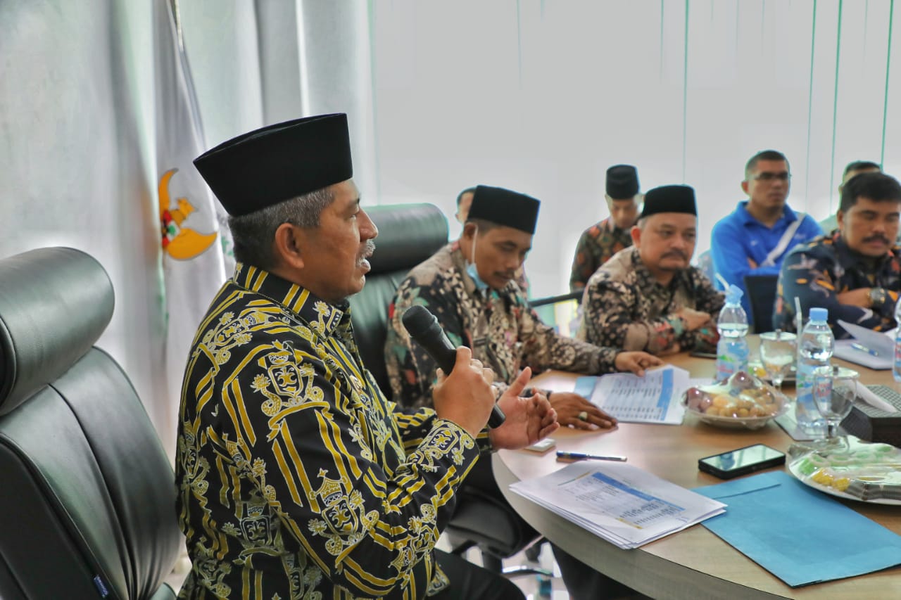 Siak, Lintaspena.com – Bupati Siak Alfedri saat memimpin rapat sinkronkan program kolaborasi BAZNAS dan Pemkab Siak terkait pengentasan kemiskinan ekstrim di wilayah Kabupaten Siak berharap pilihan bidang usaha bantuan BAZNAS tahun 2023 kedepan fokus kepada bantuan usaha tanaman pagan dan ternak.