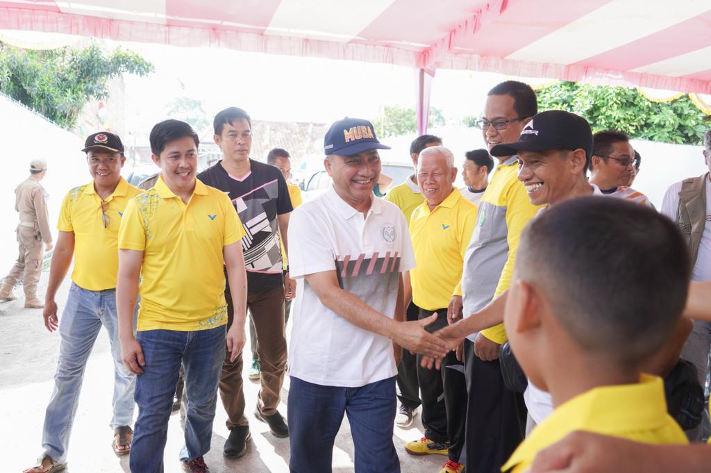 Tak hanya membuka, dalam kesempatan itu Pj Bupati Muba juga turut serta memeriahkan kejuaraan, yang bermain di partai eksebisi berpasangan dengan Kades Sereka Surianto berhadapan dengan Camat Babat Toman Heru Kharisma SSTP MSi dan H Mahali.