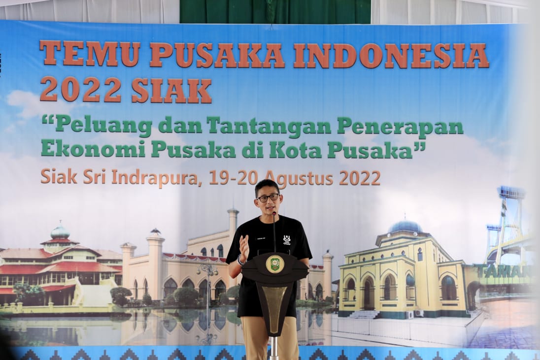 Dalam sambutannya, Menteri Pariwisata dan Ekonomi Kreatif Republik Indonesia Sandiaga Salahuddin Uno mengucapkan syukur karena setelah dirancang jauh-jauh hari, akhirnya bisa hadir bersama pada Temu Pusaka Indonesia 2022 di Kabupaten Siak.