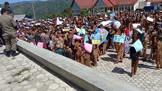 KERINCI, LINTASPENA.COM – Ribuan perangkat desa yang tergabung dalam Persatuan Perangkat Desa Indonesia (PPDI) di 18 Kecamatan, Kabupaten Kerinci melaksanakan demo besar-besaran di halaman kantor Bupati Kerinci Bukit Tengah Siulak, Kamis (25/05/2023).