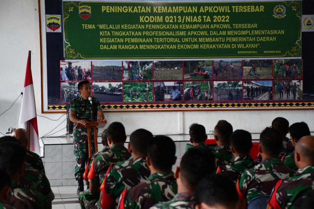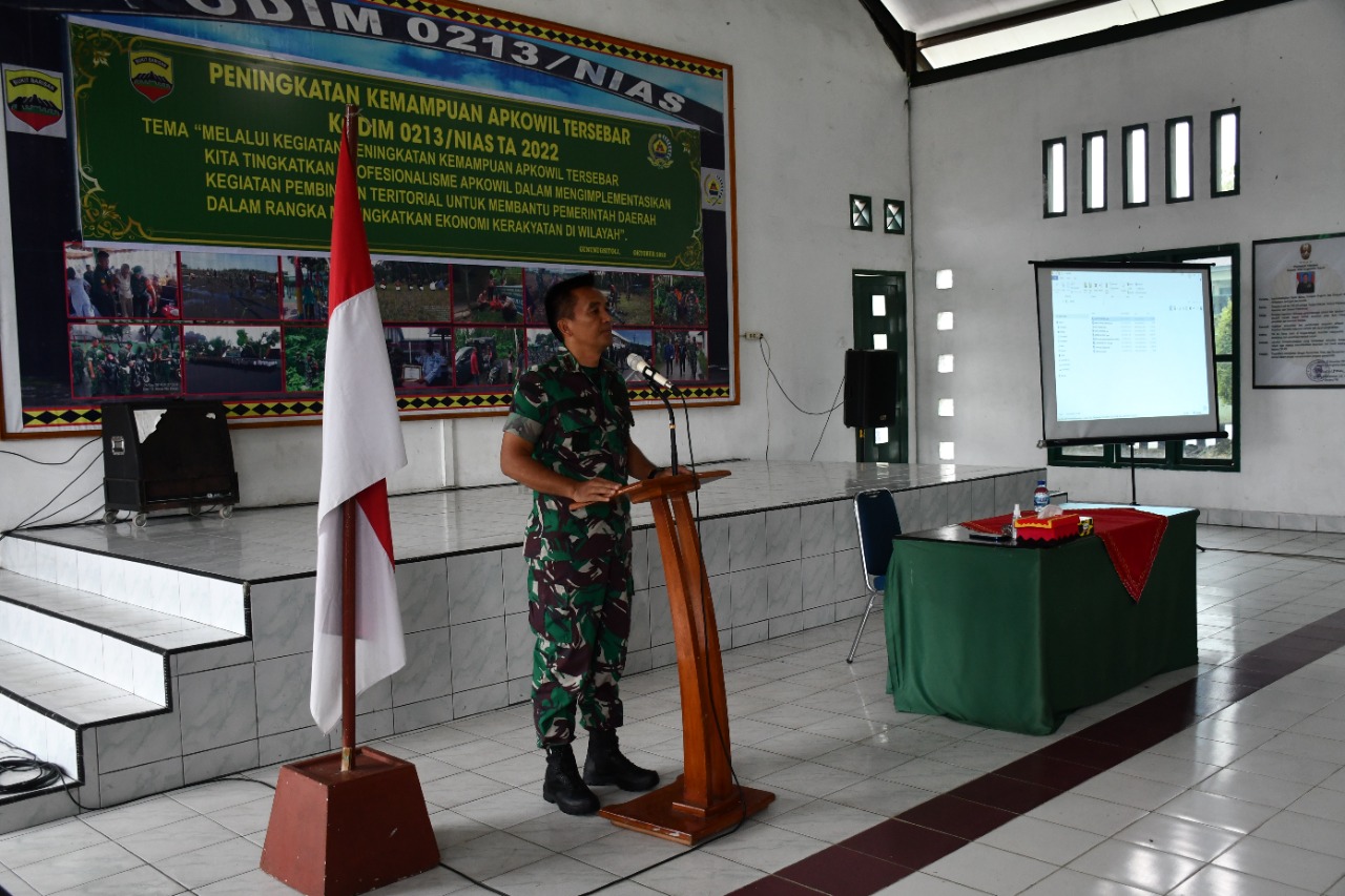 Dalam arahan dan bimbingan Dandim 0213/Nias Letkol Inf Martky Jaya Perangin Angin, menyampaikan rasa bangganya pada pelaksanaan tugas tugas Apkowil selama ini. Menurut penilaiannya baik program kerja maupun non program dari komando atas, pelaksanaanya sudah bersinergi dengan pemerintah daerah dan semua elemen masyarakat yang ada diwilayah.