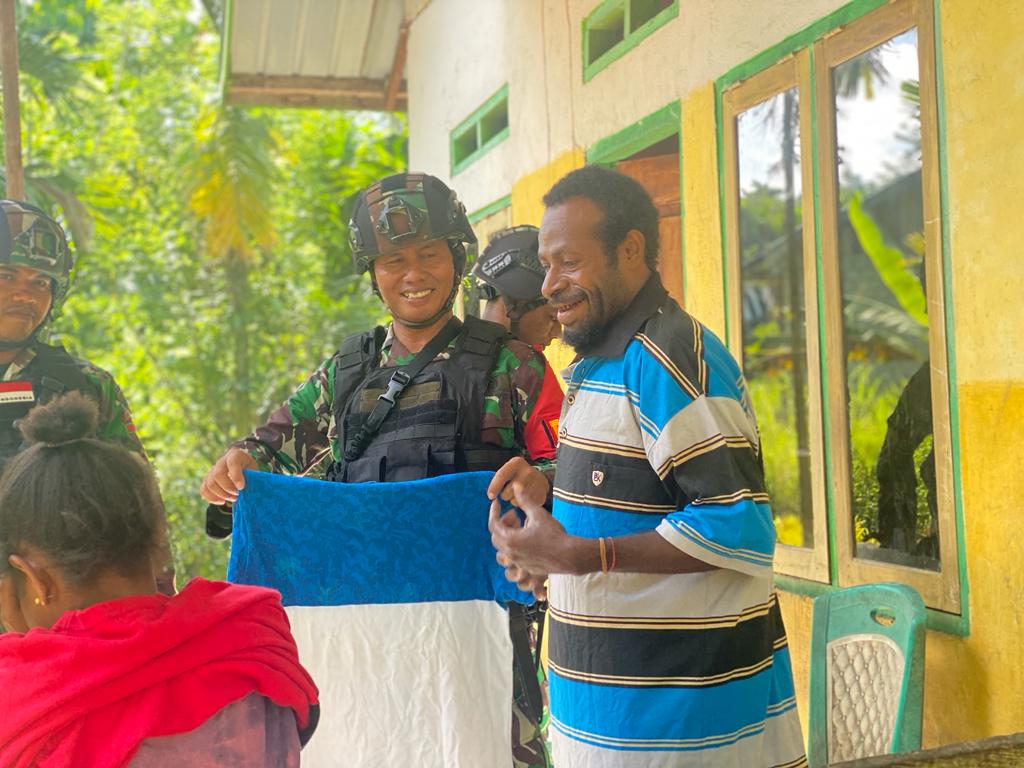 “Terimakasih banyak bapak sudah mau datang kesini (Desa Adat Uskuar) kalau ada waktu kami main kepos,” ujar Bpk. Fred selaku Ondo Afi. (Humas Yonif 132/BS)