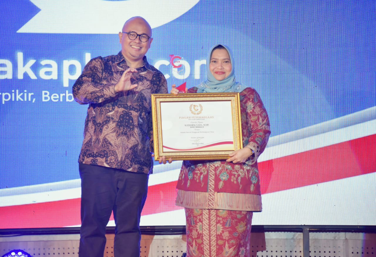 Sebagai Kategori Kepala Daerah Penggerak Pembangunan Desa, Bupati Kasmarni Terima Penghargaan Cakaplah Award