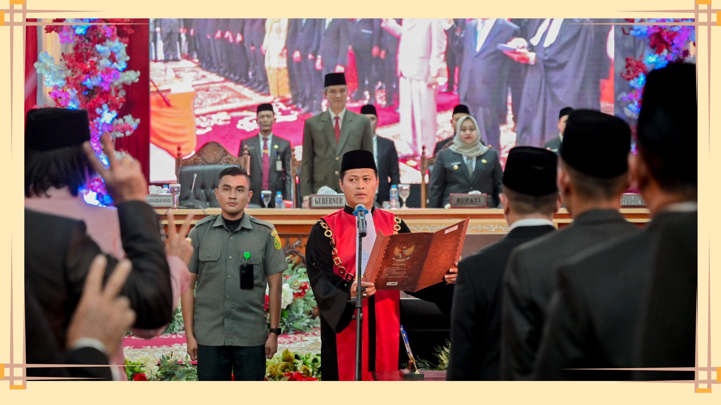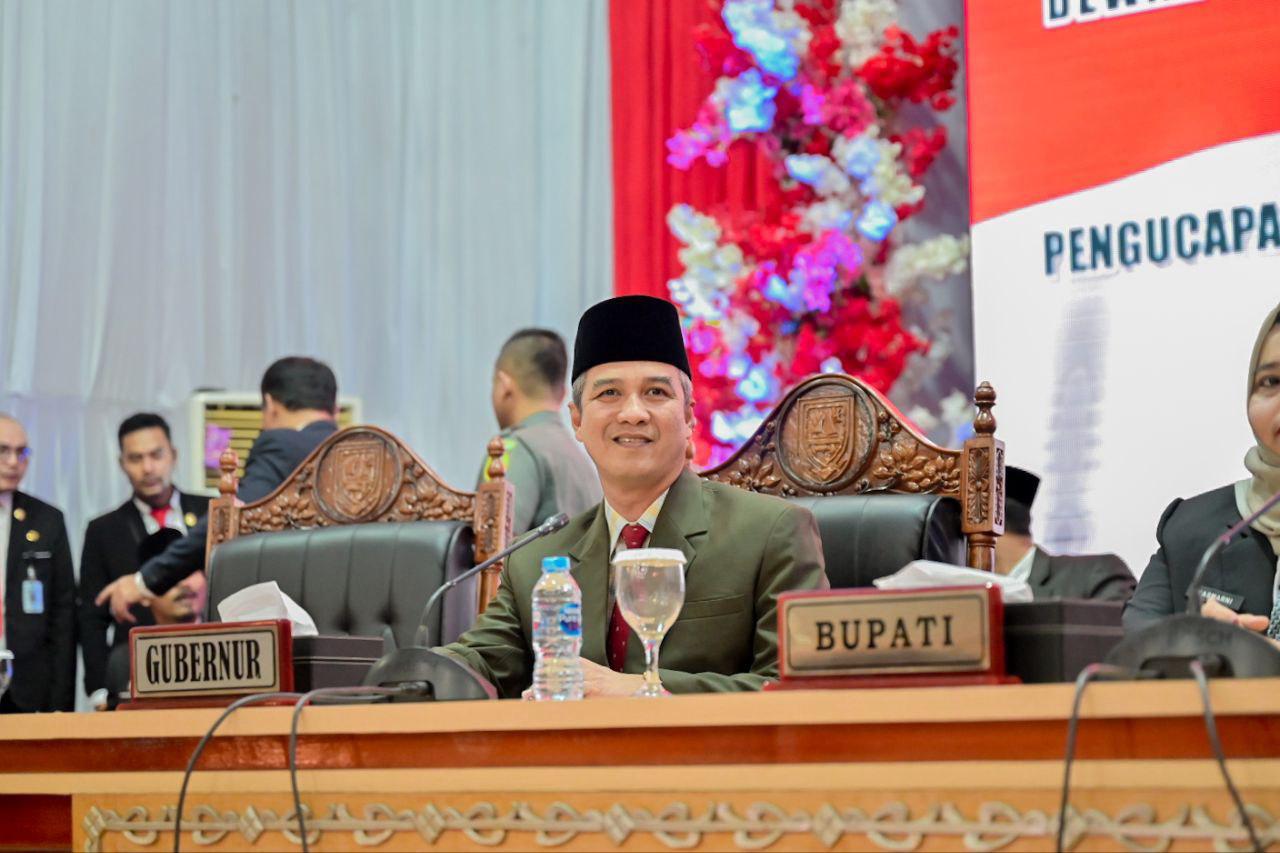 Sekretaris DPRD Bengkalis Rafiardhi Ikhsan, membacakan Keputusan Gubernur Riau, Nomor: 3421/VIII/2024 tentang Anggota DPRD Kabupaten Bengkalis, masa jabatan 2024-2029 yang diresmikan pengangkatannya, diterbitkan pada tanggal 29 Agustus 2024.