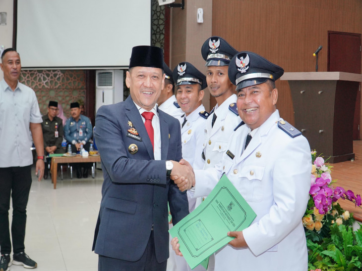 Pj Bupati Kampar Hambali usai melantik, dalam arahannya menyampaikan ucapan selamat kepada para kepala desa yang telah mendapatkan perpanjangan masa jabatan selama sua tahun kedepan.
