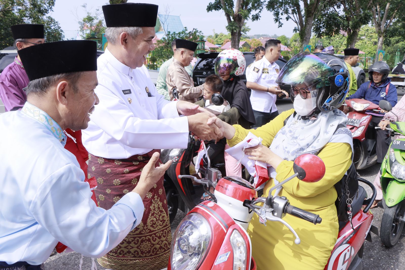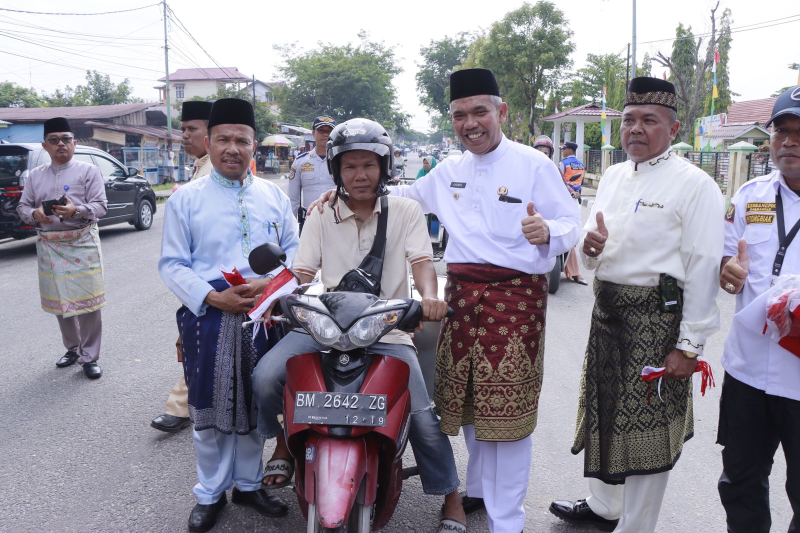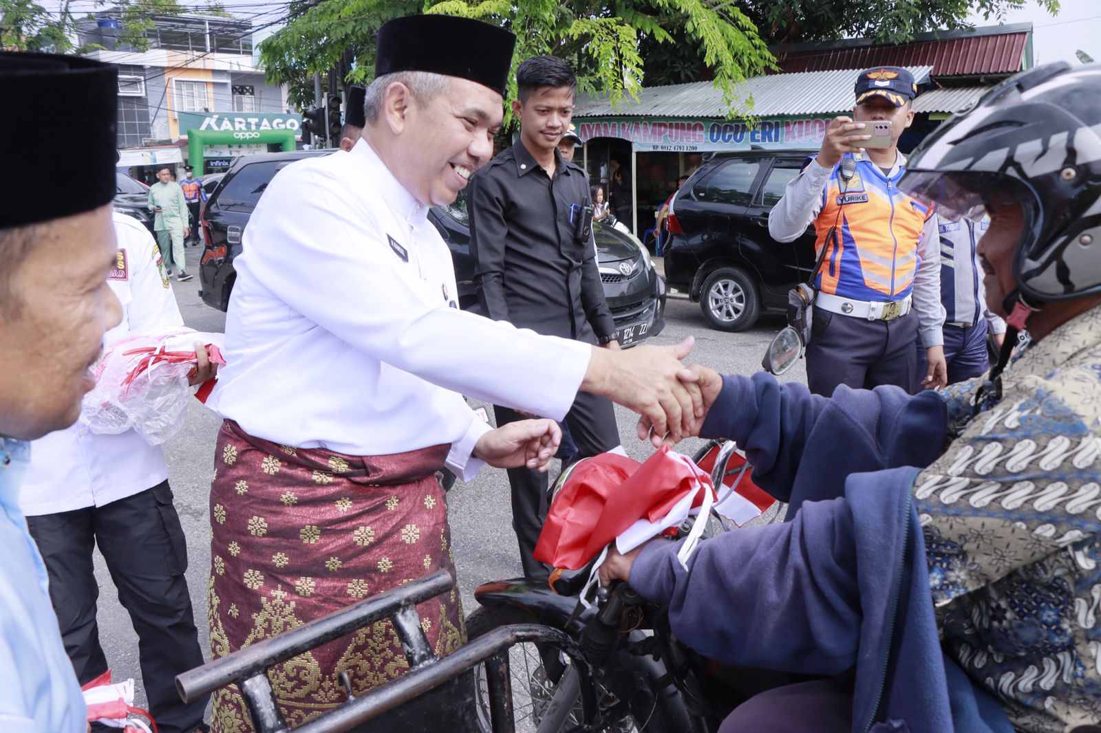 Bangkinang Kota, Lintaspena.com – Usai Upacara HUT Provinsi Riau dan Membuka secara Resmi Lomba Ketangkasan Damkar, Pj Bupati Kampar Dr. H. Kamsol, MM langsung turun Kejalan membagi Bendera Merah Putih Kepada Masyarakat Kabupaten Kampar di Simpang Empat Lampu Merah Jl. DI Pandjaitan, Jl. Sisingamangaraja SD Teladan Bangkinang Kota, Selasa (9/8/2022).