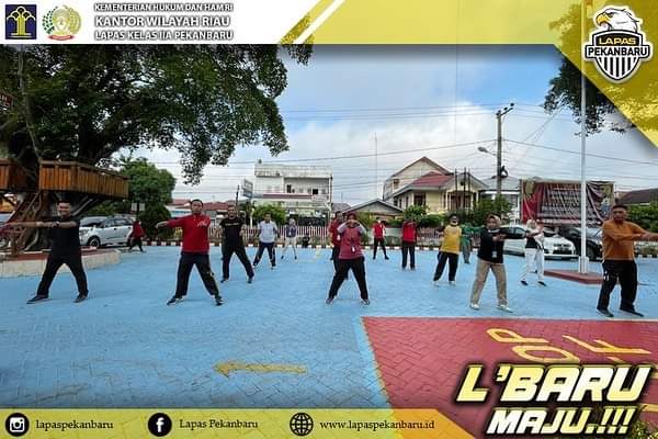 Kegiatan olah raga senam bagi pegawai di Lembaga Pemasyarakatan Kelas II A Pekanbaru ini menerapkan protokol kesehatan (prokes) seperti yang di anjurkan oleh pemerintah. Semoga pandemi covid 19 ini cepat berakhir agar seluruh aktivitas dan kegiatan pembinaan yang ada di Lembaga Pemasyarakatan Kelas II A Pekanbaru dapat berjalan seperti semula. **(Red)