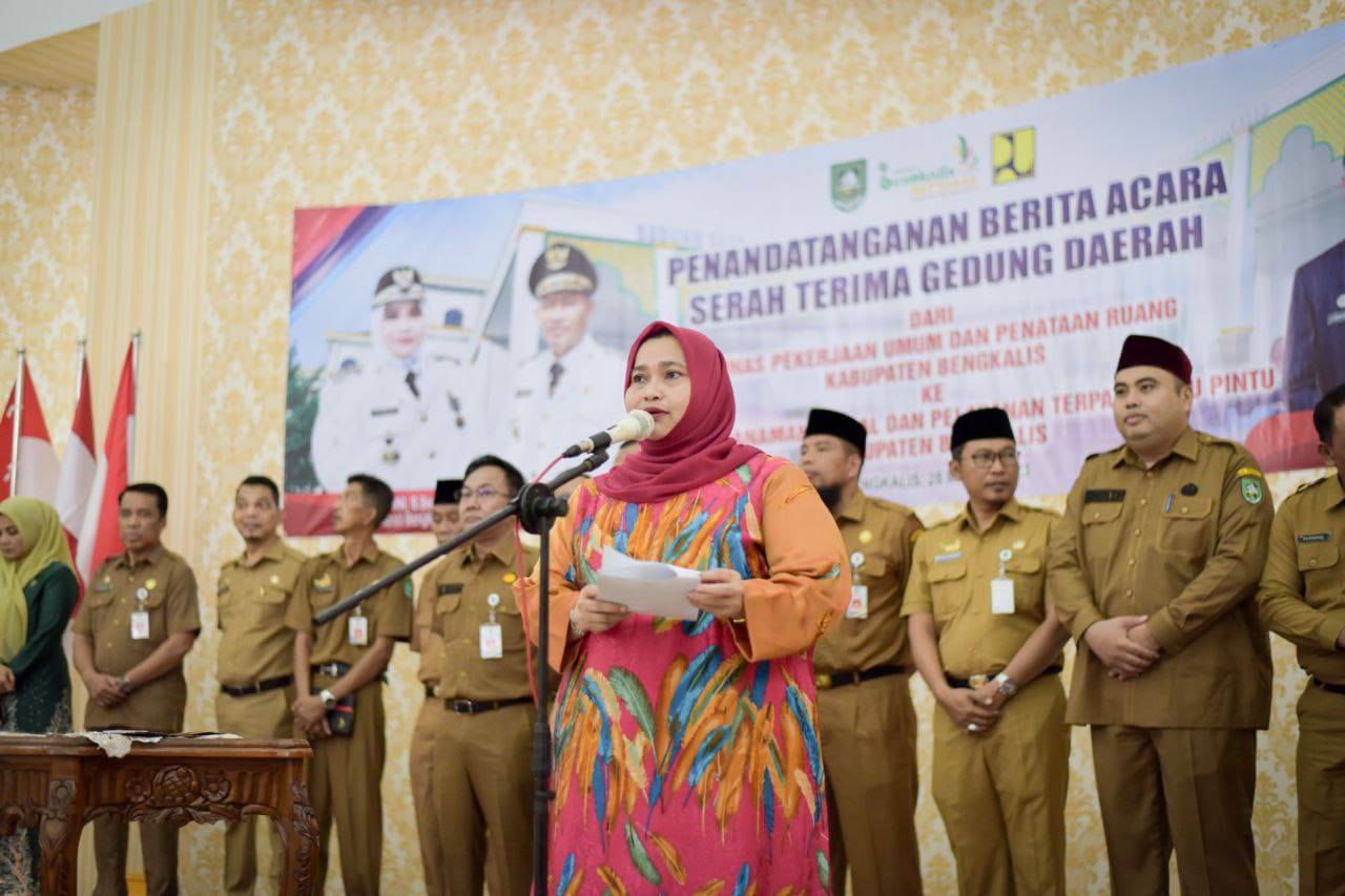 Bengkalis, Lintaspena.com – Bupati Bengkalis, Kasmarni bersama Wakil Bupati Dr. H. Bagus Santoso, hari ini, menyaksikan serah terima Gedung Daerah / Mall Pelayanan Publik, dari Dinas Pekerjaan Umum dan Penataan Ruang ke Dinas Penanaman Modal dan Pelayanan Terpadu Satu Pintu Kabupaten Bengkalis di Gedung Daerah Bengkalis, Selasa (28/3/2023).
