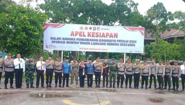“Dalam amanatnya, Wakapolres Inhu, Kompol Teddy Ardian, SH,. S.I.K,.MH membacakan arahan Kapolres Inhu, “saya bangga saat ini kita sudah akan memasuki tahapan kampanye Pemilu 2024, oleh sebab itu guna mengamankan kampanye Pemilu 2024 maka Polri didukung TNI Kementrian Lembaga Instansi terkait dan Mitra Kamtibmas lainnya menggelar apel kesiapan pengamanan kampanye dalam Operasi Mantap Brata Tahun 2023-2024,” Ungkapnya.