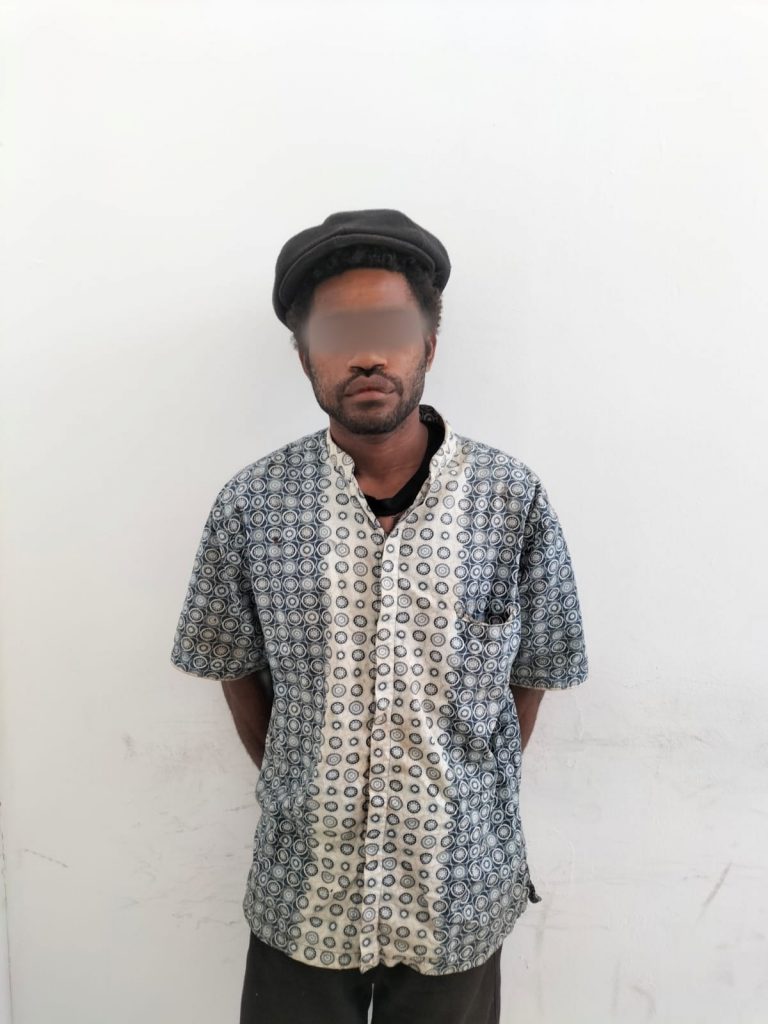 Wadansatgas Pamwiltasrat Yonif 132/BS Mayor Inf Zulfikar Rakita Dewa mengatakan pelaku berinisial BM (28) asal Vanimo PNG. Pelaku membawa dua butir munisi aktif yaitu berupa 1 (satu) butir munisi tajam Kaliber 7,62 mm dan 1 (satu) munisi tajam Kaliber 5,56 mm serta pisau lipat.