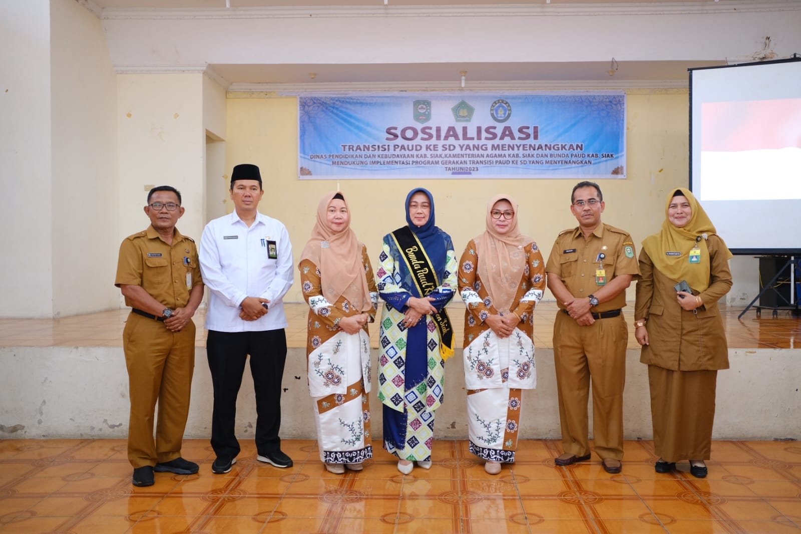 Di kesempatan itu dilakukan penandatanganan Komitmen Bersama oleh Dinas Pendidikan dan Kebudayaan Kabupaten Siak, Kementerian Agaman Kab Siak, Bunda Paud Kab Siak, dalam mendukung implementasi program Gerakan trasnsisi Paud ke SD yang menyenangkan tahun 2023.