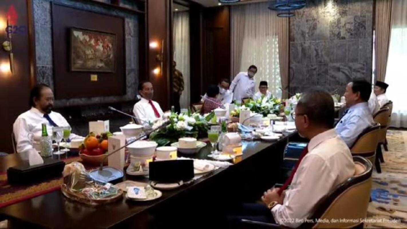 Jakarta, Lintaspena.com – Presiden Joko Widodo atau Jokowi menjamu makan siang 7 ketua umum partai politik sebelum pelantikan menteri dan wakil menteri baru di Istana Negara, Jakarta, Rabu, 15 Juni 2022. Ketua Umum Partai Persatuan Pembangunan (PPP) Suharso Monoarfa menyebut pertemuan ini lebih banyak membahas perkembangan terkini situasi ekonomi global.