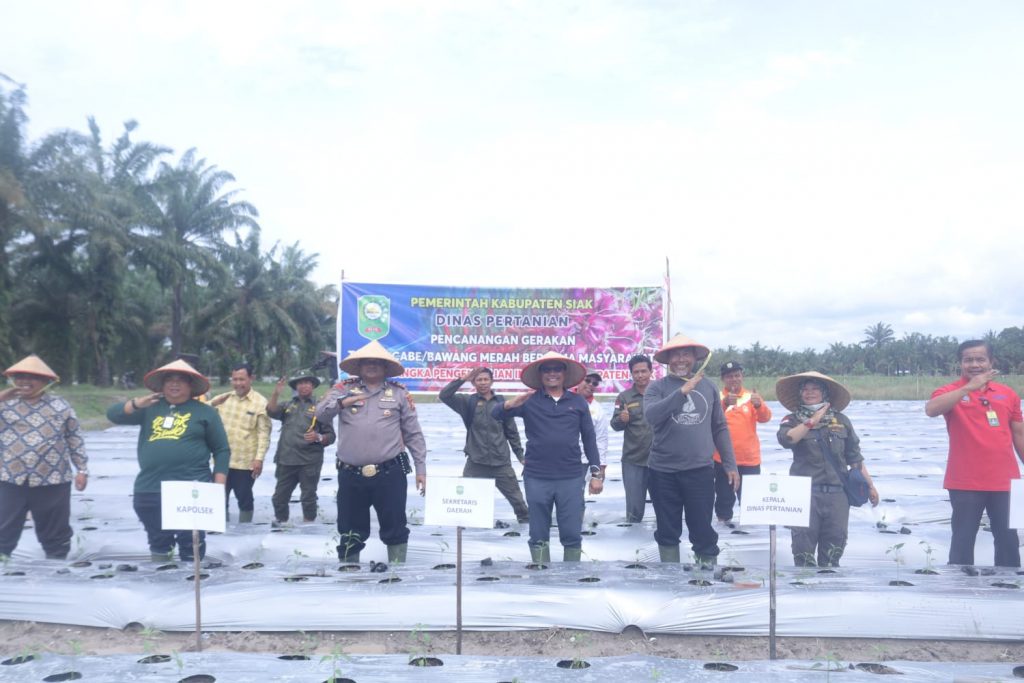 ”Komoditi cabai dan bawang merah salah satu komoditas tertinggi yang kerap menjadi penyebab tingginya inflasi di daerah. Untuk itu, kami mengajak masyarakat tanam cabe dan bawang merah untuk menekan angka Inflasi di Kabupaten Siak,” ucapnya di temui usai menanam bibit cabe dan bawang merah di Kampung Langsat Permai, Kecamatan Bungaraya, kabupaten Siak, Kamis (3/11/2022).