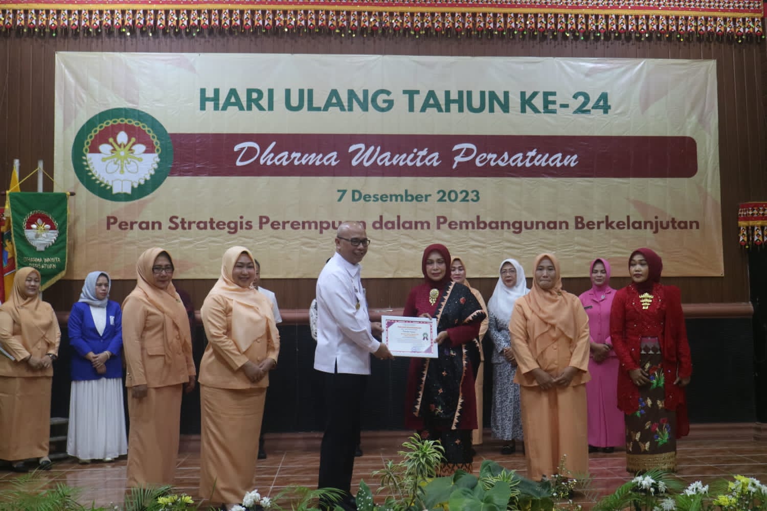 Tema peringatan Hari Ulang Tahun Dharma Wanita Persatuan ke-24 Tahun 2023 adalah: “Peran Strategis Perempuan dalam Pembangunan Berkelanjutan”.
