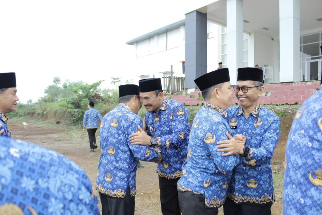 Di akhir Apel Hari Kesadaran Nasional, PJ Bupati dan seluruh Kepala OPD dan ASN berjabat tangan sambil saling memaafkan dalam suasana Idul Fitri 1445 H 2024 M.