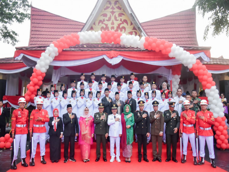 Selanjutnya sebagai Komandan Upacara Kanit Tipikor Polres Kampar Ipda Sulton Sekar Jagat, sementara untuk Pasukan Pengibar Bendera, Komandan Kompi IPDA Musmulyadi, Pembawa Baki Nova Lana Putri dari SMA N 1 Bangkinang Kota, petugas penurunan Bendera M Syafi’i dari SMA N 1 Tambang, Chirunnisa El Febri dari SMA N 1 Bangkinang Kota, dan M Zidan Rizaldi dari SMA N 1 Bangkinang Kota, Aubade Siswa/SMP N 1 Bangkinang Kota serta Korp Musik Marching Band Andika Praja Kab. Kampar.