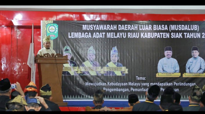 Siak, Lintaspena.com – Wakil Bupati Siak, Husni Merza membuka resmi Musyawarah Daerah Luar Biasa (Musdalub) Lembaga Adat Melayu Riau Kabupaten Siak mengusung tema Mewujudkan Kebudayaan Melayu Perlindungan, Pengembangan, Pemanfaatan dan Pembinaan, di Hotel Winaria Sutomo Siak, Kamis (6/4/2023).