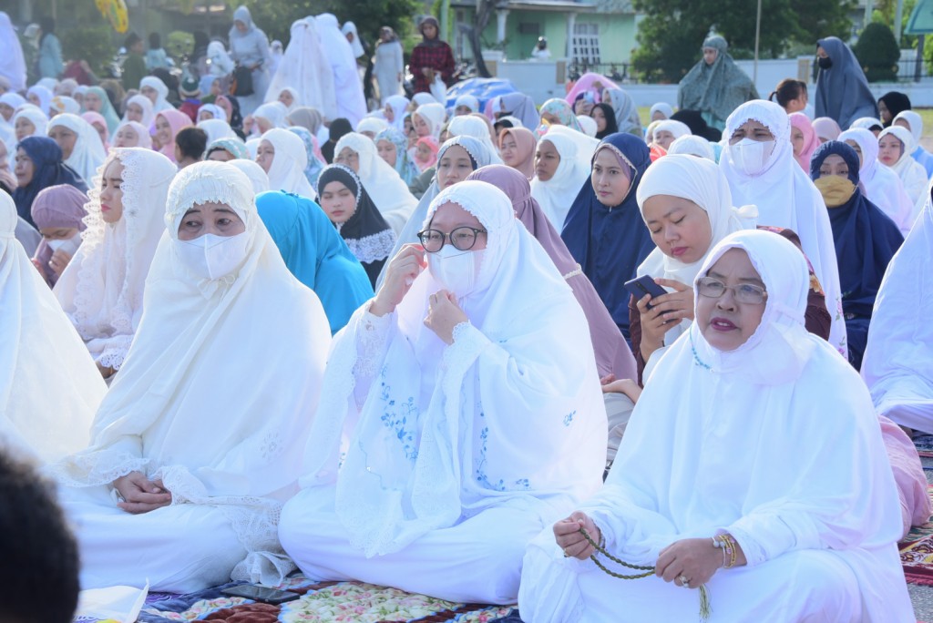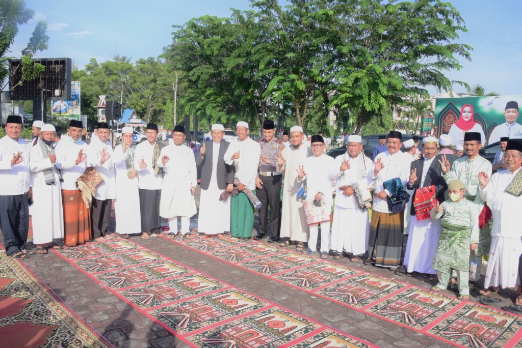 BENGKALIS, LINTASPENA.COM – Wakil Bupati Bengkalis H Bagus Santoso bersama istri, keluarga dan masyarakat sekitarnya melaksanakan sholat Idul Adha 1443 Hijriyah di lapangan Tugu Bengkalis, Ahad 10 Juli 2022.