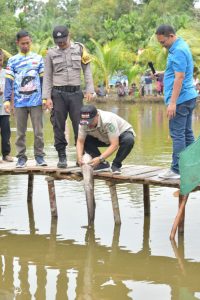Ket. Foto : Wakil Bupati H. Bagus Santoso, Melepaskan ikan lele di dalam kolam pancing seberat 10 Kg.