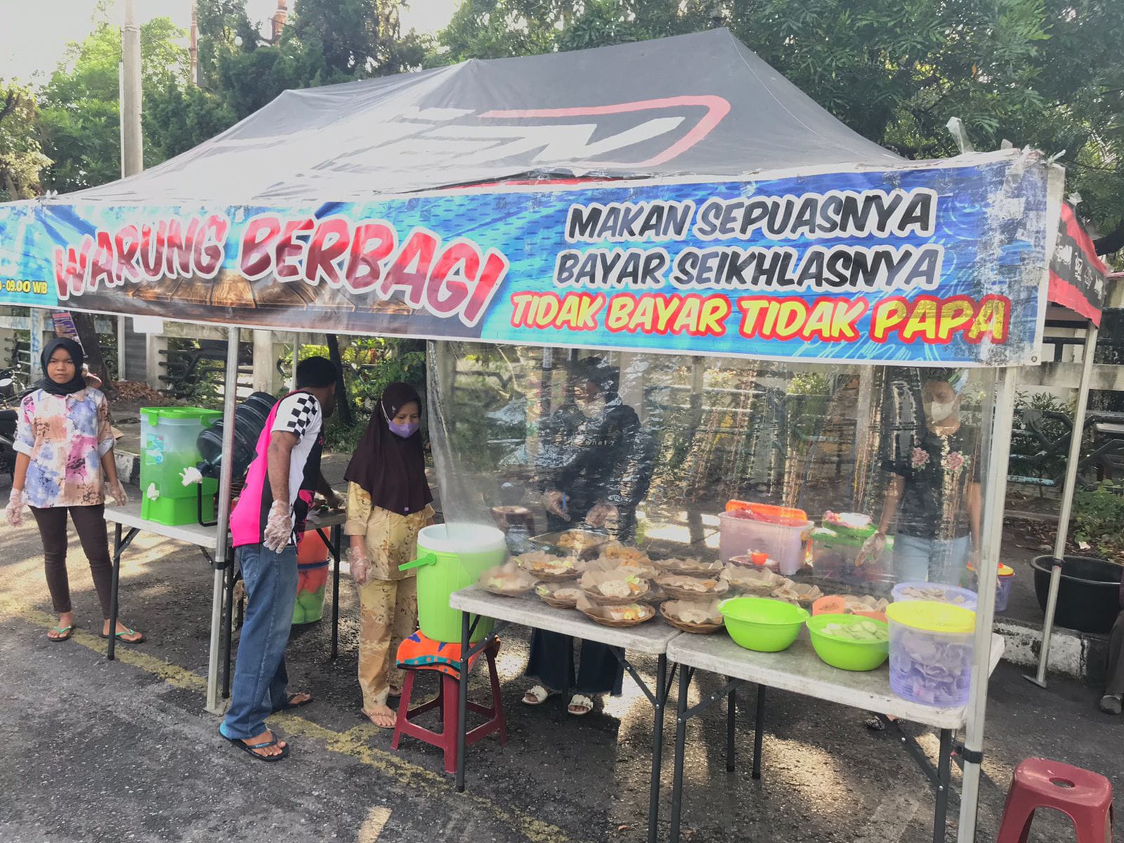“Warung ini kita buka mulai pukul 06.45 WIB, lumayan ramai warga yang datang. Alhamdulillah, niat kami hanya untuk berbagi, bukan jualan,” kata Emil, Minggu (31/7).